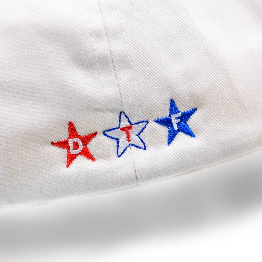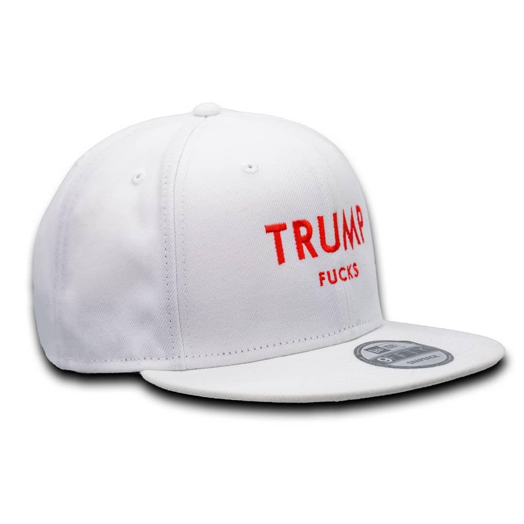 WHITE NEW ERA WITH RED EMBROIDERY.
